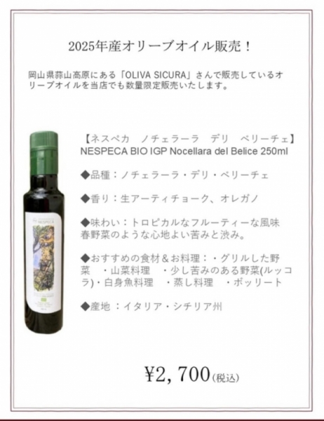 しぼりたてオリーブオイル販売のお知らせ
